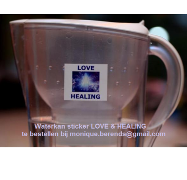 De waterkansticker LOVE & HEALING geeft een mooie boodschap aan je drinkwater en visueel geeft het je inspiratie tot het creëren van / en openstellen voor liefde en heling in je leven.